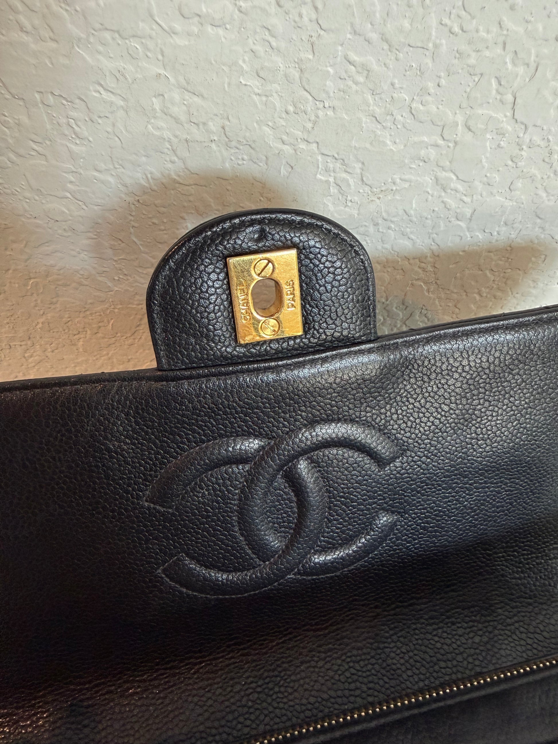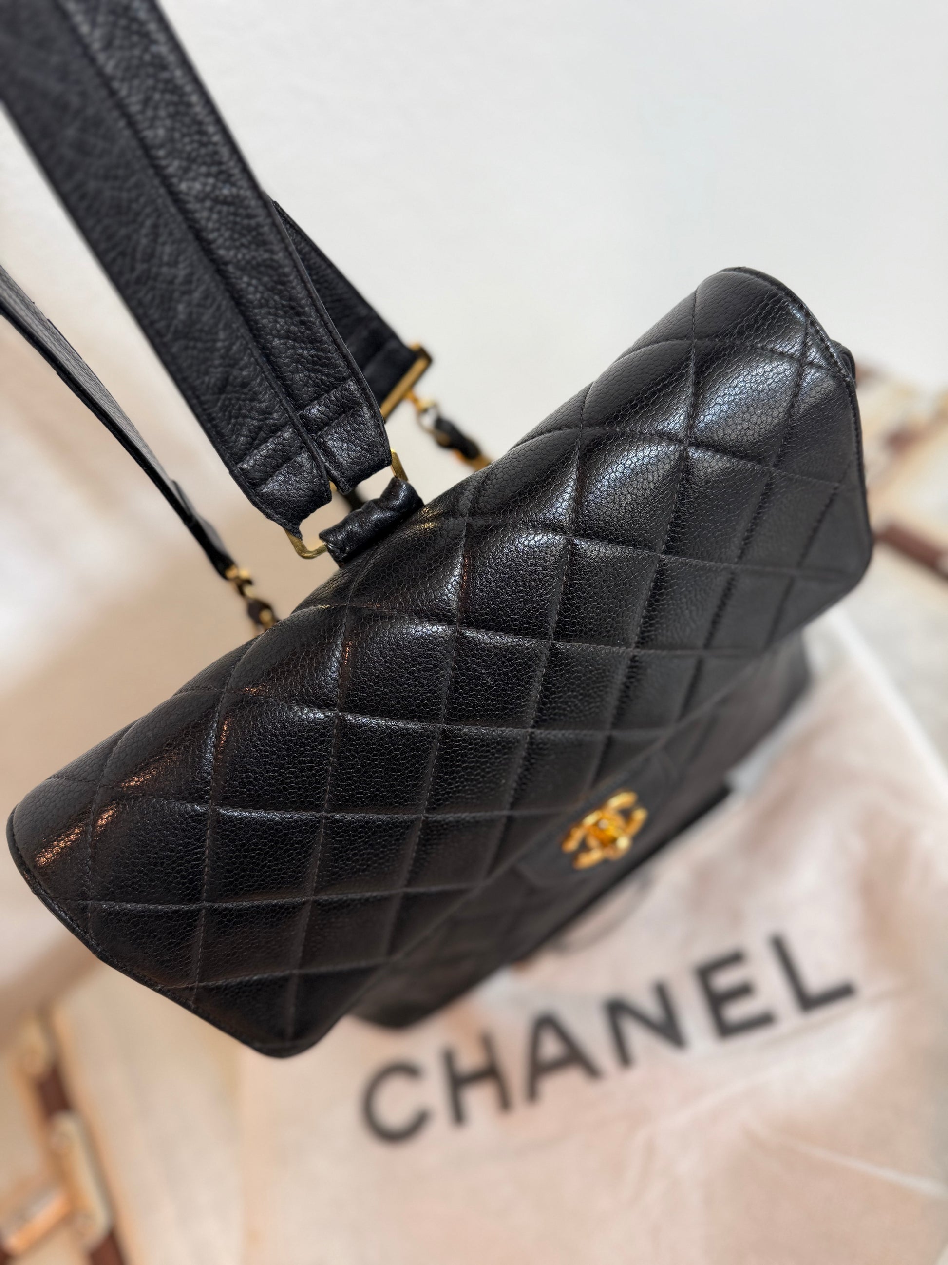 Pre-owned Authentic Chanel Vintage Caviar Square Backpack